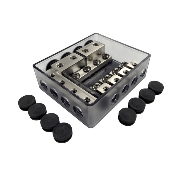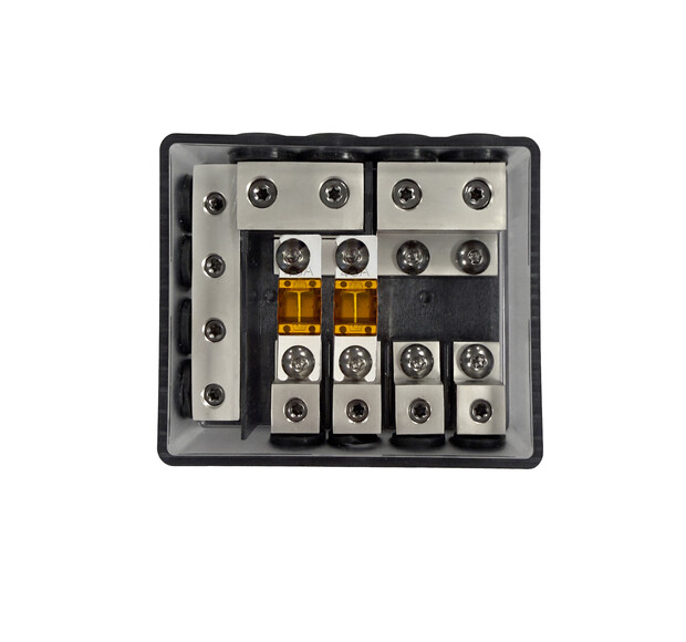 The other two 50 mm² inputs are designed for grounding (the ground block does not have fuse locations). The terminal block has 4 pieces with 20 mm2 outputs.