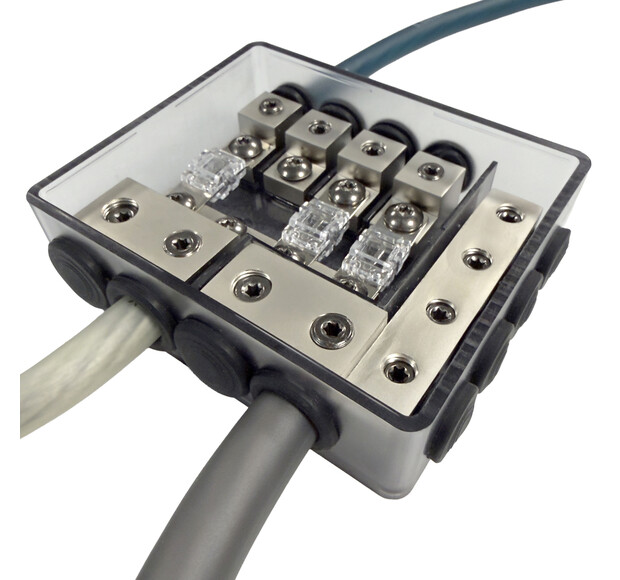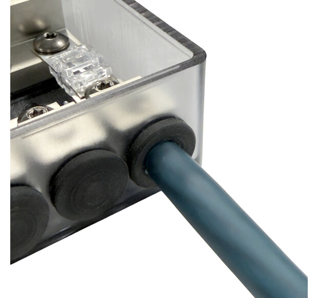 The cable input / outputs have rubber O-rings that can be modified to fit the cable thickness. Inside the blocks have a wire end sleeves that allow you to secure the cables very firmly in place.