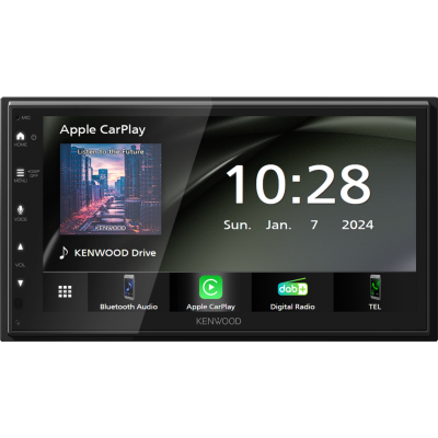 De Kenwood DMX5023DABS combineert gebruiksvriendelijke smartphone-integratie met kristalheldere beeld- en geluidskwaliteit. Het 6.8" WSVGA-display biedt een hoge resolutie en capacitieve touchbediening, terwijl Apple CarPlay en Android Auto zorgen voor veilige toegang tot navigatie, muziek en berichten. Dankzij USB-mirroring kun je apps zoals Waze of YouTube direct op het scherm weergeven. Met de ingebouwde DAB+ tuner geniet je van digitale radio zonder storingen, en Bluetooth maakt handsfree bellen en draadloze audiostreaming eenvoudig. Het compacte chassisontwerp zorgt ervoor dat dit systeem in vrijwel elk voertuig kan worden geïnstalleerd.