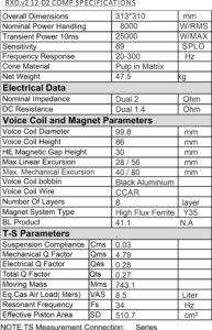 12" / 30cm - 2x2Ohm - 47,5kg